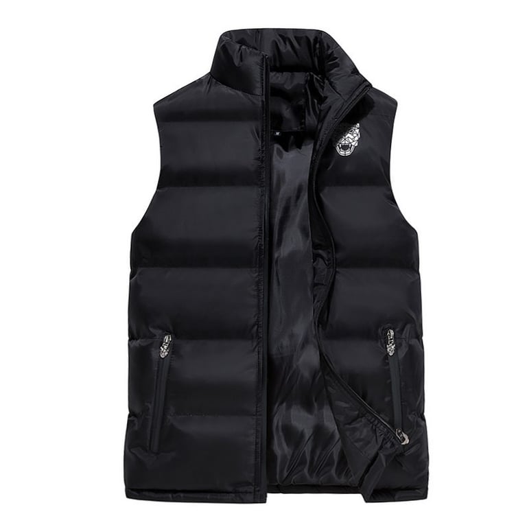 Mannelijke winter gewatteerde vest met een opstaande kraag en twee zijzakken. Beschikbaar in vier kleurvarianten.