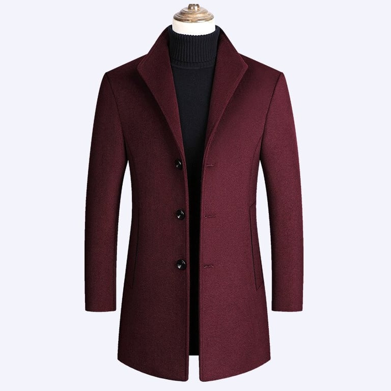 Mannenjas met een aansluitende snit. Kraag met revers. Zijzakken. Sluiting met knopen. Lange mouwen. Meer kleurvarianten beschikbaar.