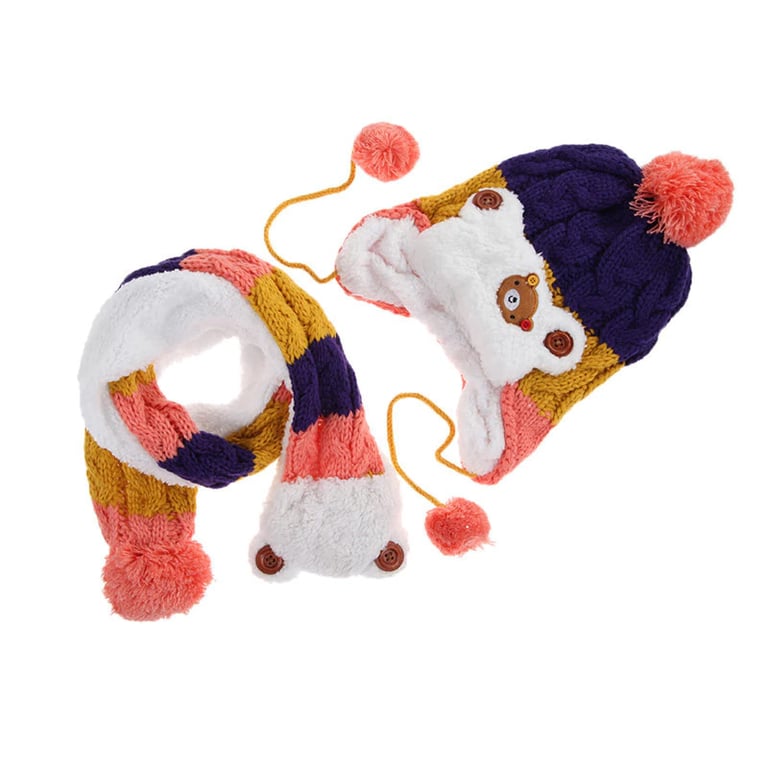 Stijlvolle kinder muts en sjaal set zodat uw kind het niet koud heeft en niet verkouden wordt rond de nek.
