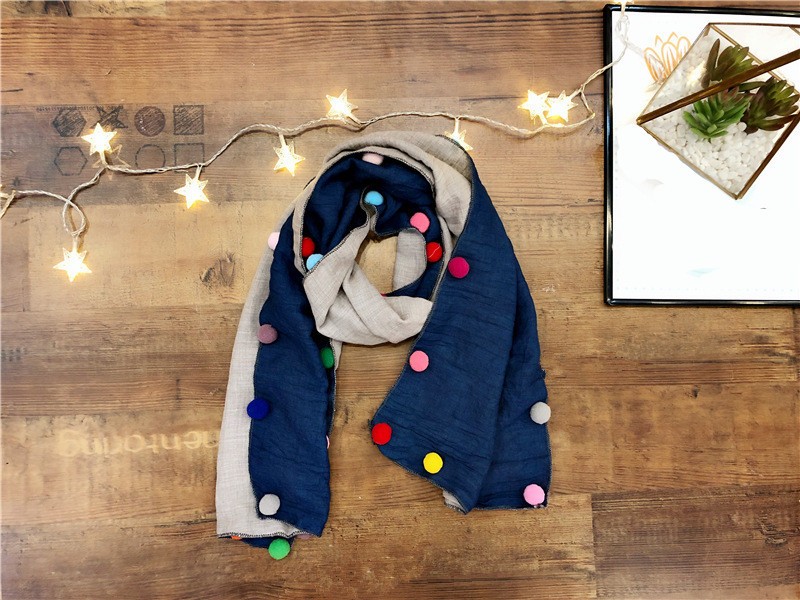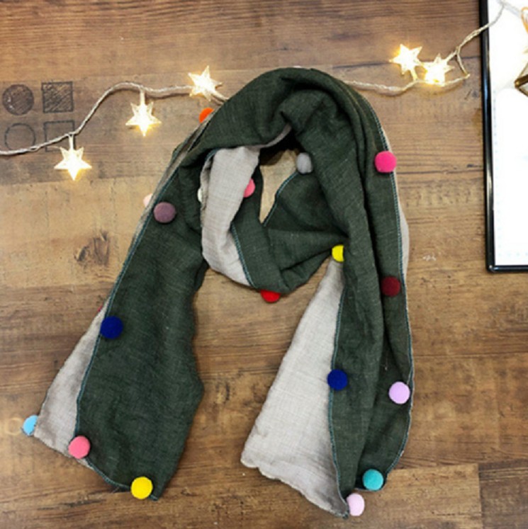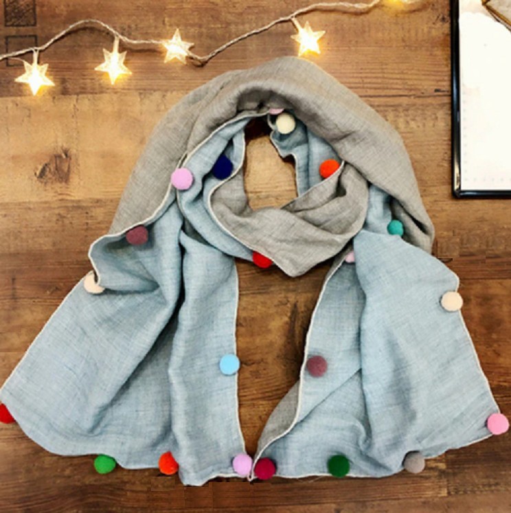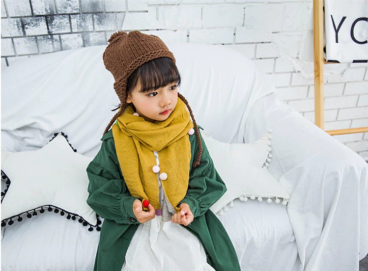 Deze prachtige sjaal versierd met kleine pompons zal elk kind blij maken.