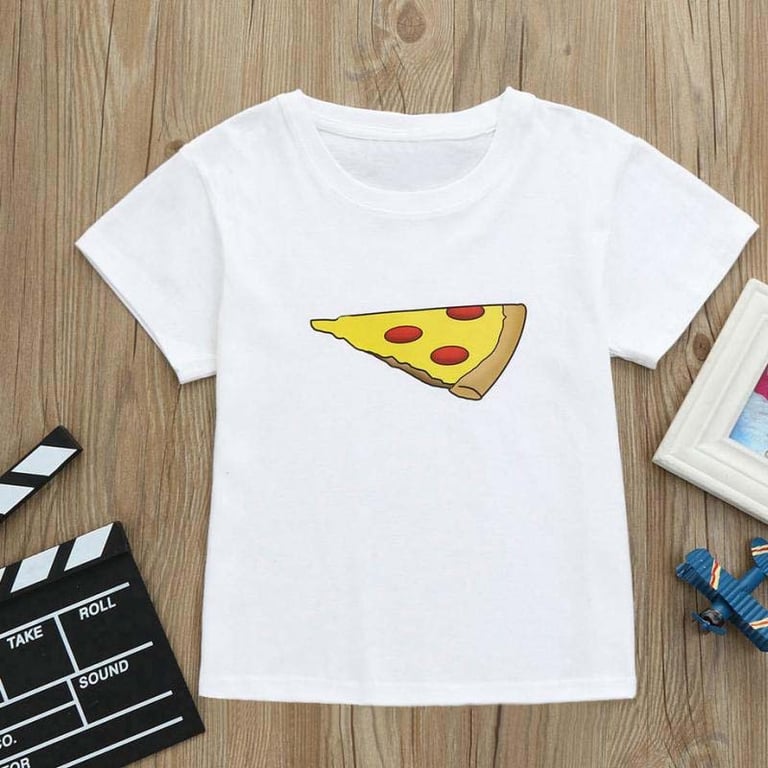 T-shirt voor papa en kind met een print van Pizza.