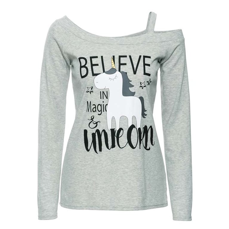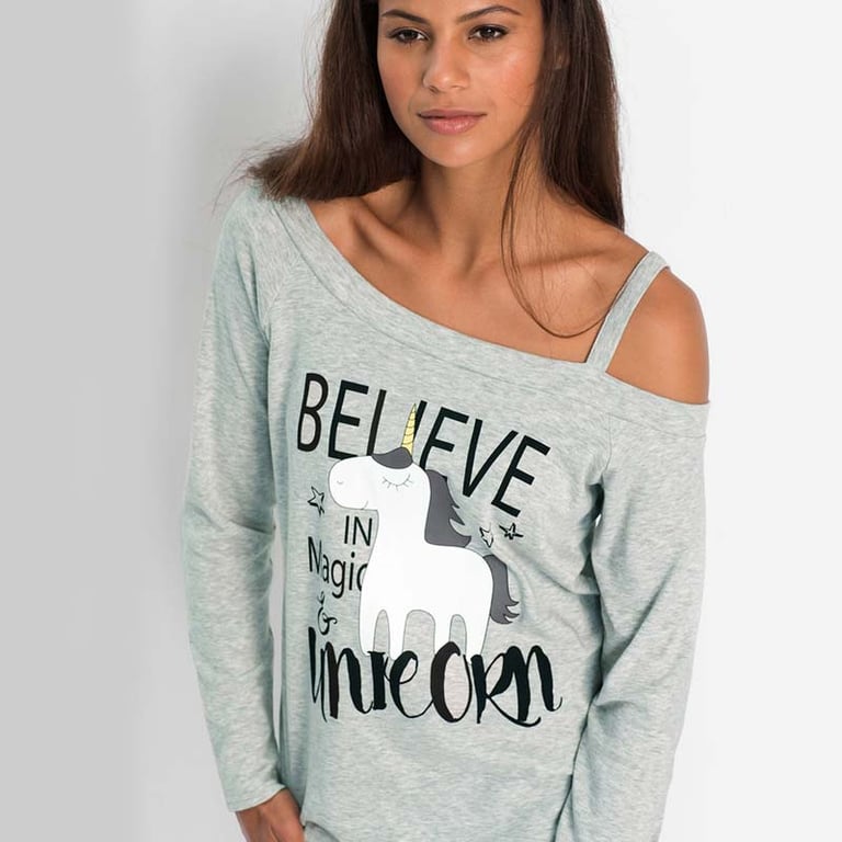 Stijlvolle top met lange mouwen en een eenhoornmotief! Geniet van het comfort in deze chique top, of je nu thuis of op het werk bent.